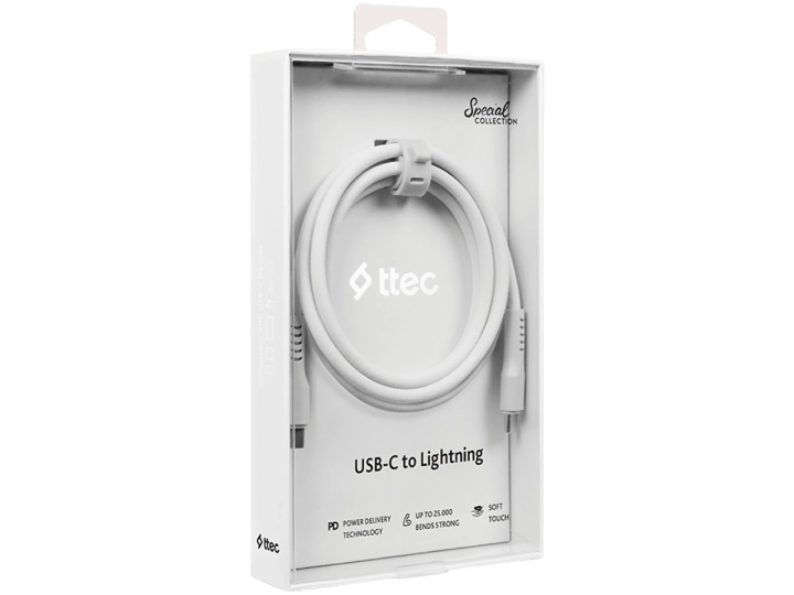 ttec USB-C - USB-C 60W PD/QC Fast Charging/Data Cable, 120cm, White