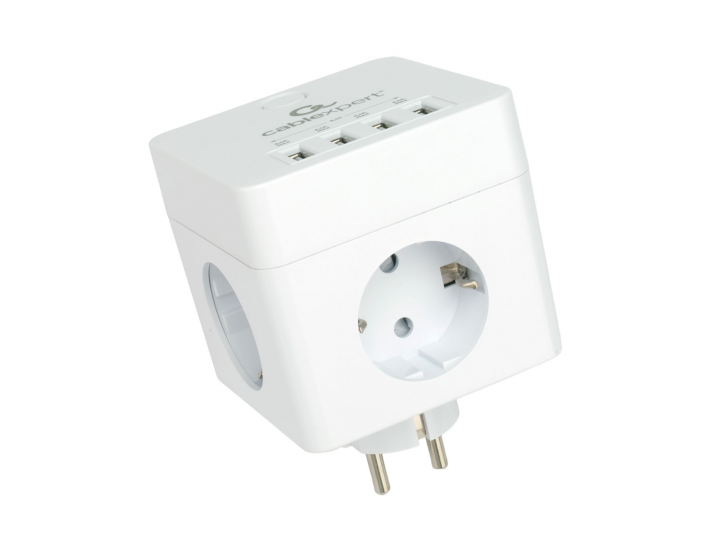 Сетевой фильтр Cablexpert Cube CUBE-4-U4-W, 4 р, 16А, 4хUSB, ур.защиты 2+, коробка белый