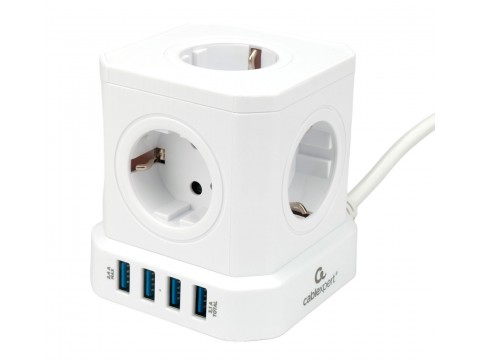 Сетевой фильтр Cablexpert Cube, CUBE-4-CU3-W, 4р, 16А, 1xType-C PD, 3хUSB, ур.защ. 2+, коробка белый