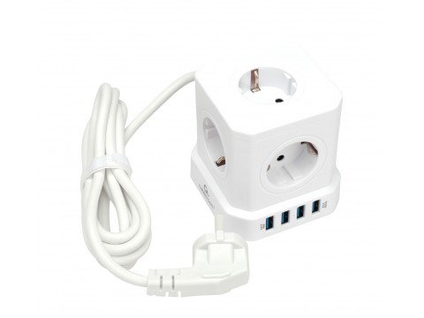 Сетевой фильтр Cablexpert Tower 5р, TWR-5-U4-W-3, 10А, 4хUSB, 3.1А, 3м, ур.защ. 4+, коробка белый