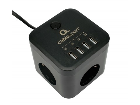 Сетевой фильтр Cablexpert Cube CUBE-3-U4-B-1.5, 3р, 10А, 4хUSB, 1.5м, ур.защиты 4+, коробка черный