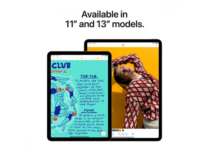 Функция «В центре внимания», Поддержка аудио-видео вызовов с iPad на любое устройство с поддержкой FaceTime по Wi-Fi или сотовой связи, Supports full native resolution on the built-in display at millions of colors, Supports one external display with до 6K resolution at 60Hz, Native DisplayPort output over USB‑C, Up to 4K AirPlay for mirroring, photos, and video out to Apple TV (2nd generation or later) or AirPlay 2–enabled smart TV, Video decode engine, Video encode engine, ProRes encode and decode engine, AV1 decode, VGA, HDMI and DVI output supported using adapters (sold separately), Video mirroring and video out support through USB‑C Digital AV Multiport Adapter and USB‑C VGA Multiport Adapter (adapters sold separately)