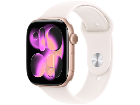 Apple Watch Series 11 GPS 46mm Rose Gold Aluminium Case with Light Blush Sport Band - S/M,Model A3333