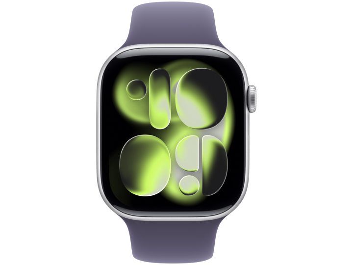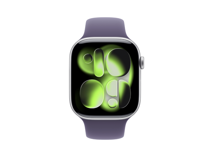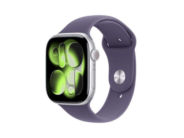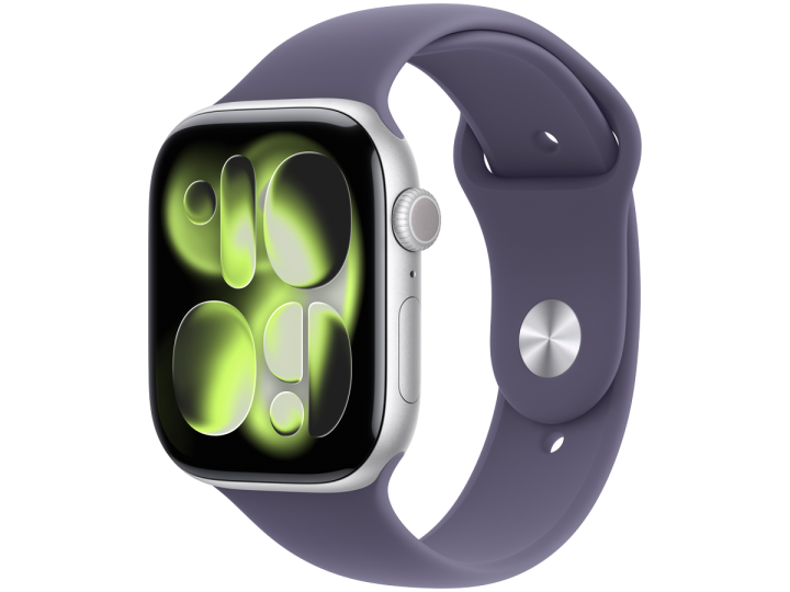 Apple Watch Series 11 GPS 46mm Silver Aluminium Case with Purple Fog Sport Band - S/M,Model A3333