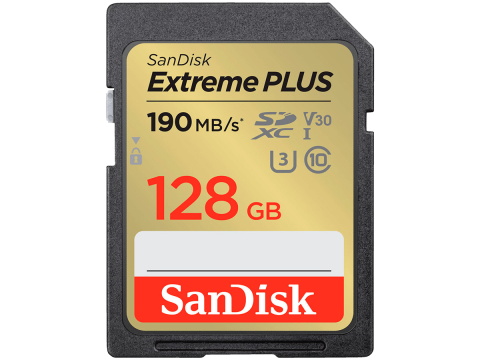 SanDisk Extreme PLUS 128GB SDXC Memory Card + 2 years RescuePRO Deluxe up to 190MB/s & 90MB/s Read/Write speeds, UHS-I, Class 10, U3, V30