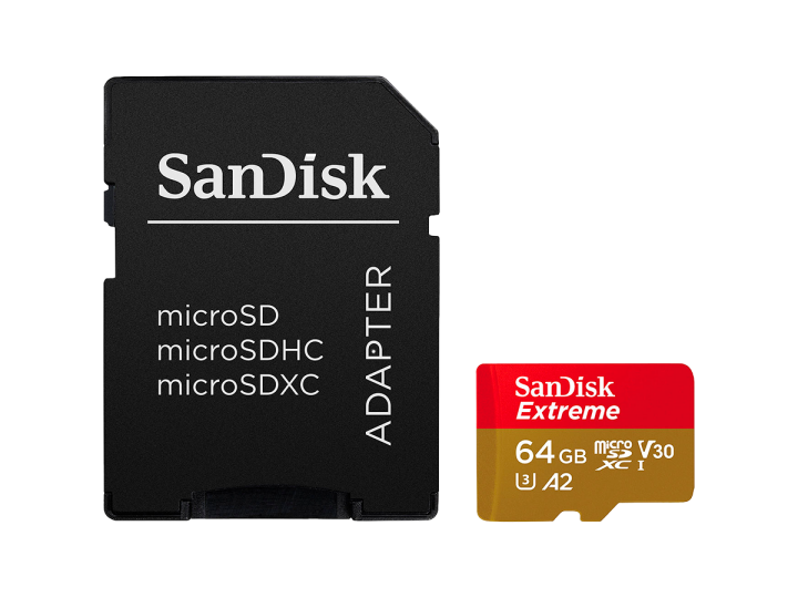SANDISK Extreme microSDXC 64GB + SD Adapter + 1 year RescuePRO Deluxe up to 170MB/s & 80MB/s Read/Write speeds A2 C10 V30 UHS-I U3
