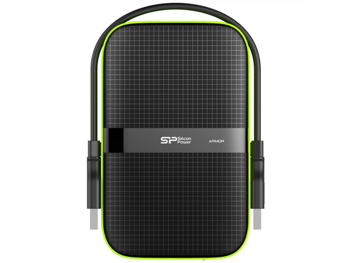 Silicon Power Armor - A60 2TB Portable HDD USB 3.2 Gen1 Black/Green, Shockproof MIL-STD 810G Method 516.6 Procedure IV, Water-resistant IPX4, LED light