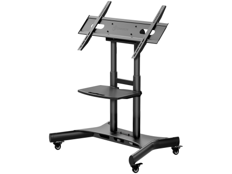 ONKRON Tilting Mobile TV Stand for 50'' – 83 Inch LCD LED OLED TV Screens & Touch Panels Rolling TV Cart on Wheels with Shelf, Black