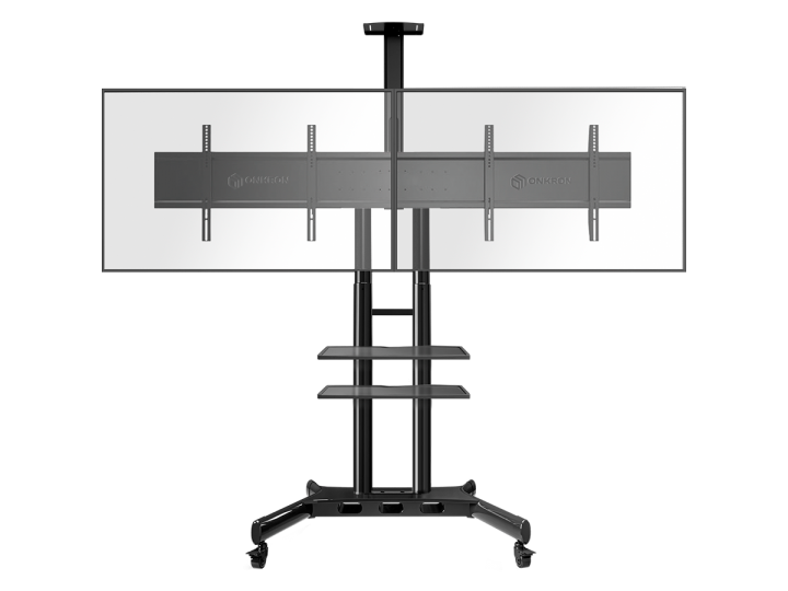 ONKRON stand for two screens with bracket 40"-65", mobile, black